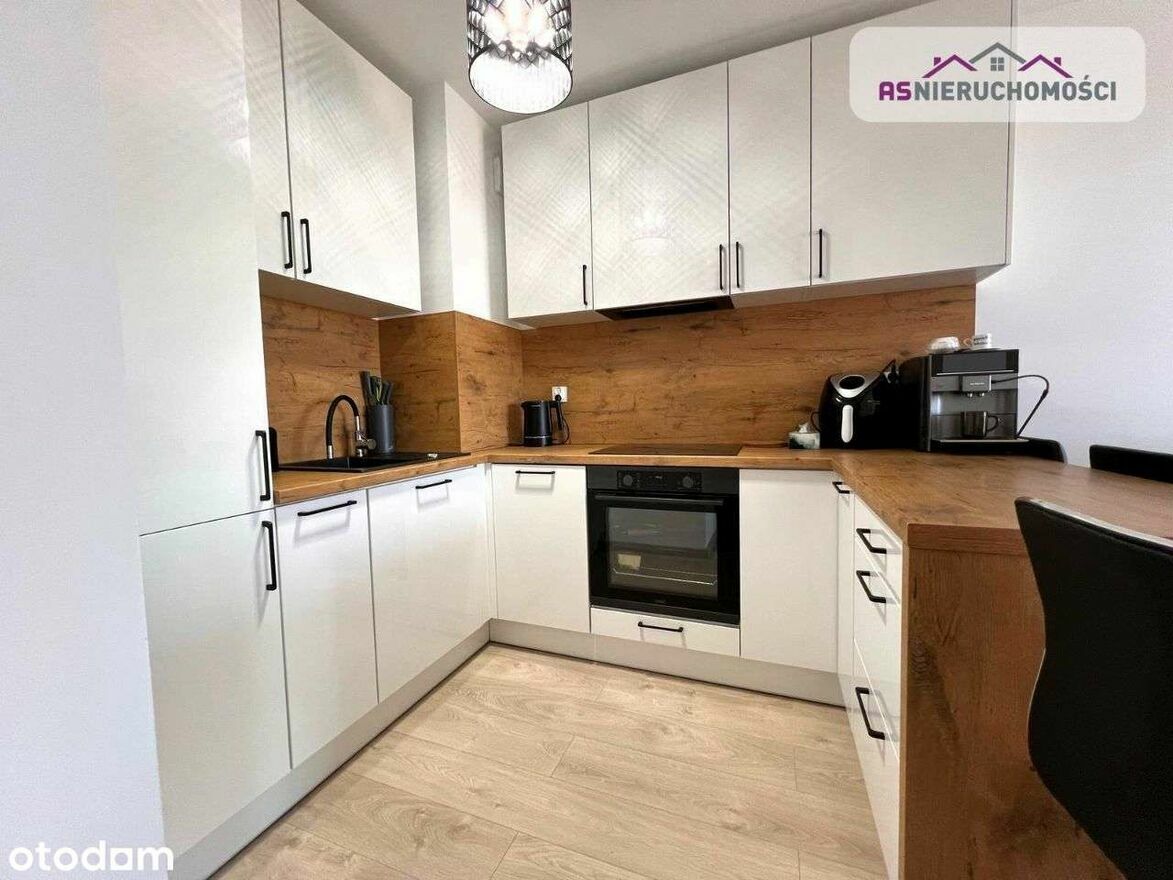 W kuchni, oprócz zabudowy wykonanej na indywidualne zamówienie, zamontowano najwyższej jakości sprzęt AGD (tj. lodówka, płyta indukcyjna, piekarnik oraz zmywarka). Z salonu wyjście na duży, efektownie przeszklony BALKON (ok. 4m2). Łazienka wykończona według najnowszych trendów, podwieszane wc, nowoczesny prysznic.
