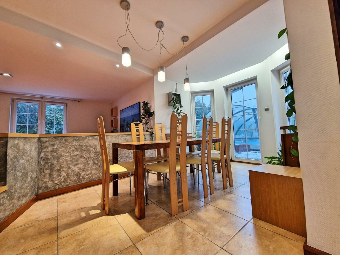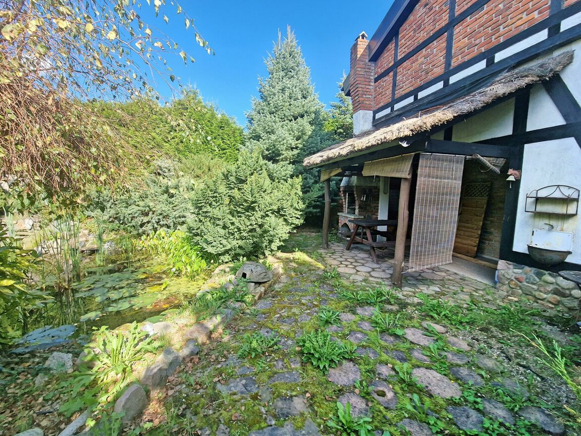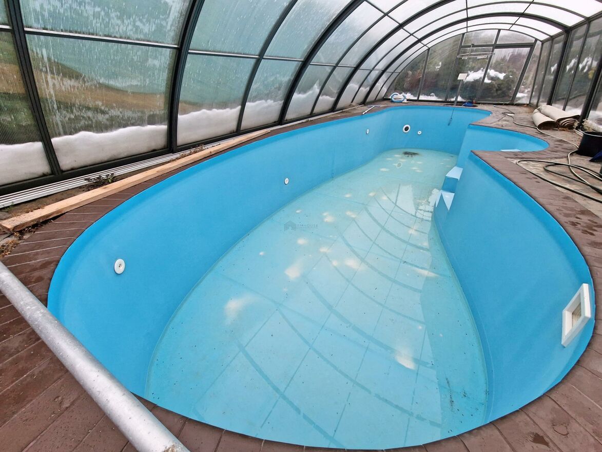 teleskopowym (zasuń- odsuń) z poliwęglanu, dzięki czemu jego użytkowanie wydłużone jest do ośmiu miesięcy w roku. Jego kształt również został zaprojektowany indywidualnie. Basen jest niemalże całkowicie bezobsługowy. Teren działki zadbany, liczne ozdobne nasadzenia. Dwa miejsca postojowe. Możliwość dobudowy garażu wolnostojącego.