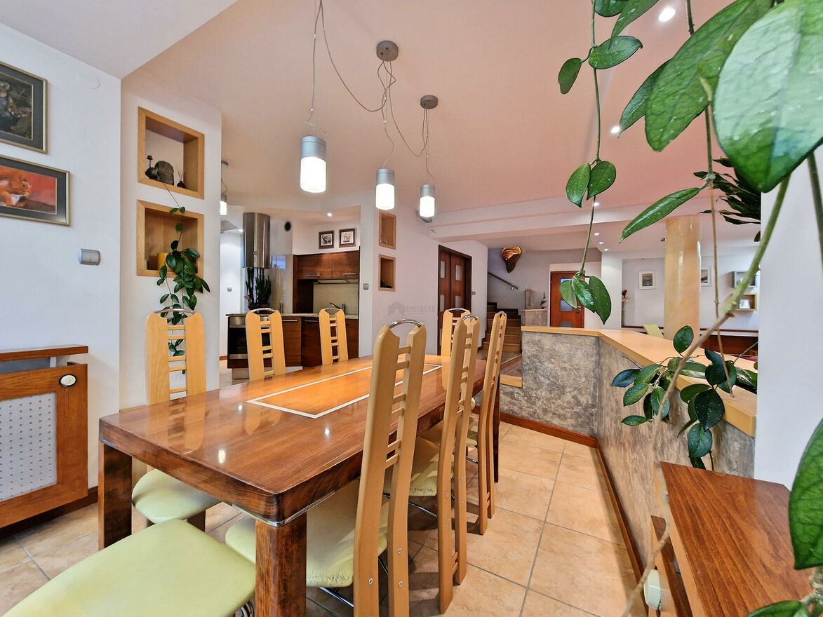 Posiadłość o niepowtarzalnym klimacie, wybudowana według indywidualnego projektu, składająca się z wolnostojącego domu o łącznej pow. użytkowej ok. 300 m2 na Rokosowie.Dom mieszkalny parterowy z użytkowym poddaszem oraz zagospodarowaną piwnicą. Wykończony z wysokiej jakości materiałów i z dbałością o szczegóły. Parter to otwarta przestrzeń podzielona na strefy, dzięki zróżnicowaniu poziomów oraz sypialnia połączona z salonem kąpielowym i garderobą. Poddasze obecnie pełni funkcje rekreacyjne. Składa się z salonu z aneksem kuchennym, oddzielnego WC, dwóch sypialni oraz przestronnej łazienki. Natomiast piwnica to centrum rozrywki, w którym możemy przyjmować gości na partyjkę bilarda, degustować wina i miło spędzać czas w gronie przyjaciół. A dla miłośników wody posiadłość oferuje podświetlany basen z podgrzewaną i ozonowaną wodą (obsługiwany przez komputer). Basen przykryty jest tunelem
