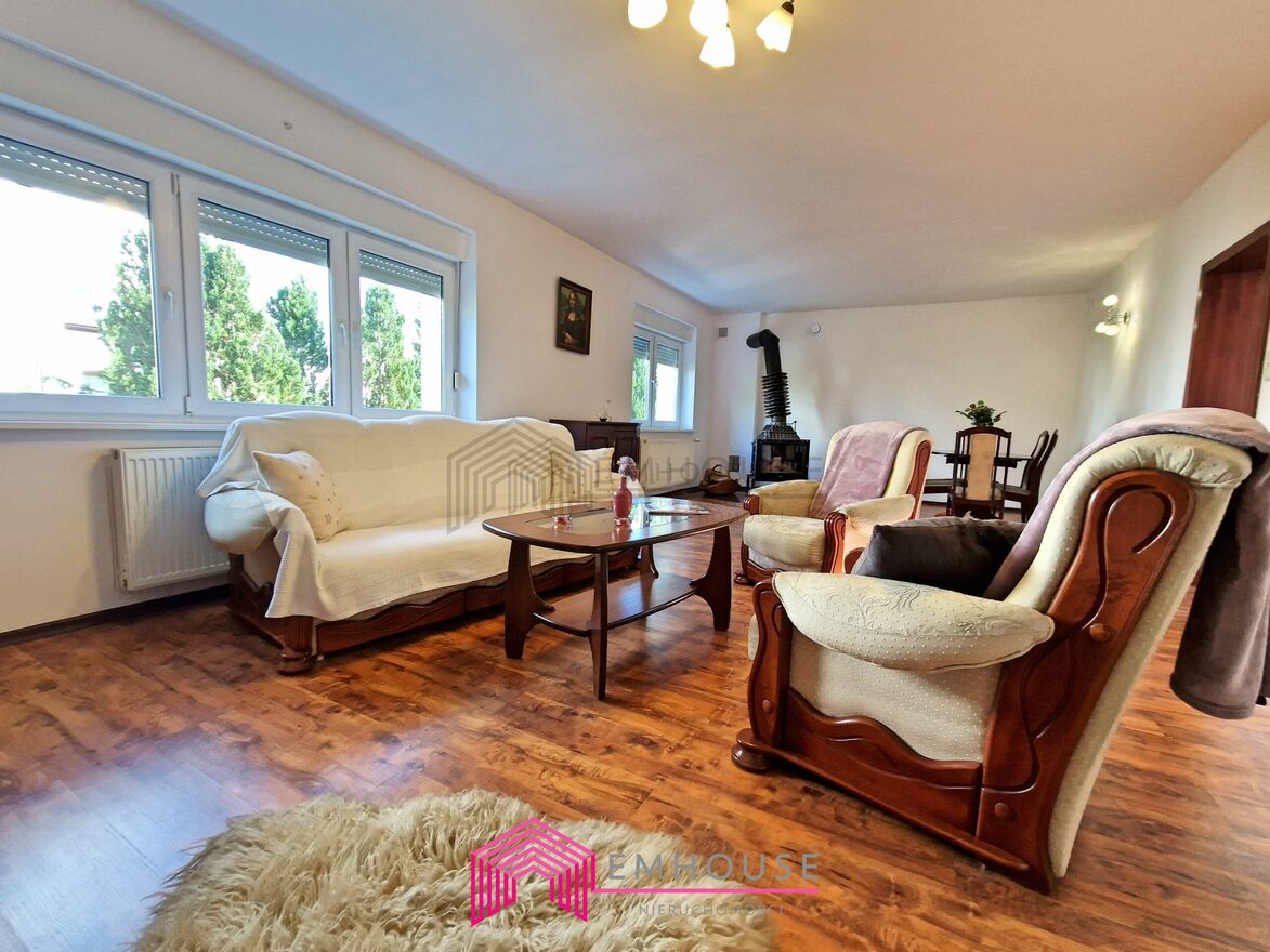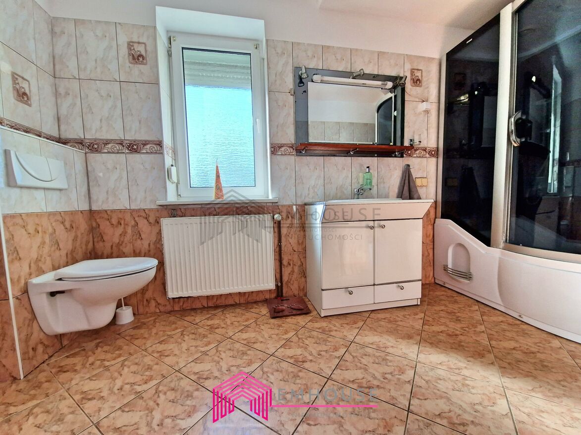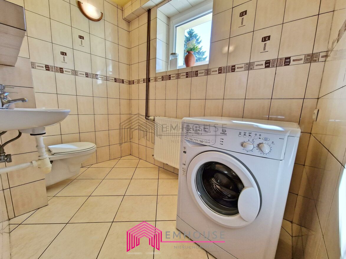 Część mieszkalna domu składa się z przestronnej, oddzielnej kuchni, komfortowego salonu, trzech sypialni i dużej łazienki z oknem. Dodatkowo z tego poziomu prowadzi wyjście na taras o powierzchni około 20 m, idealny do relaksu i spędzania wolnego czasu.