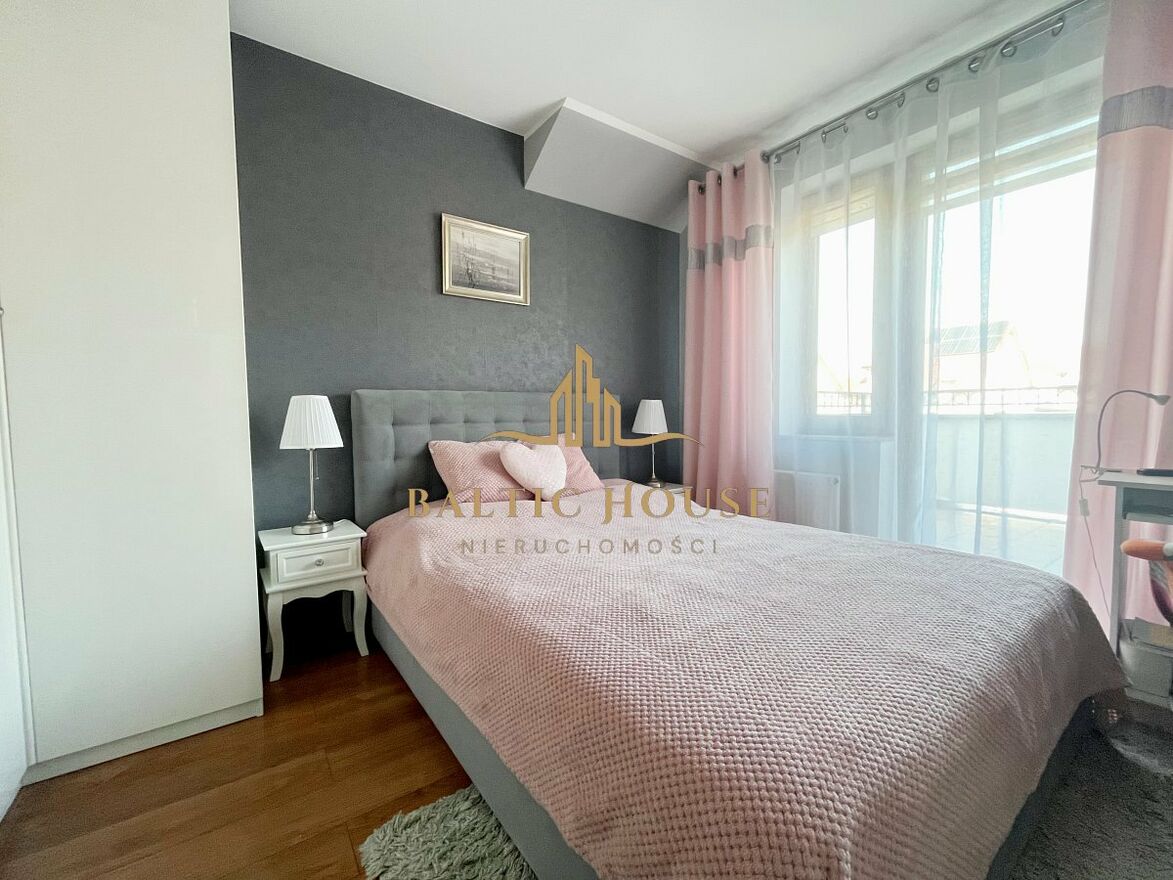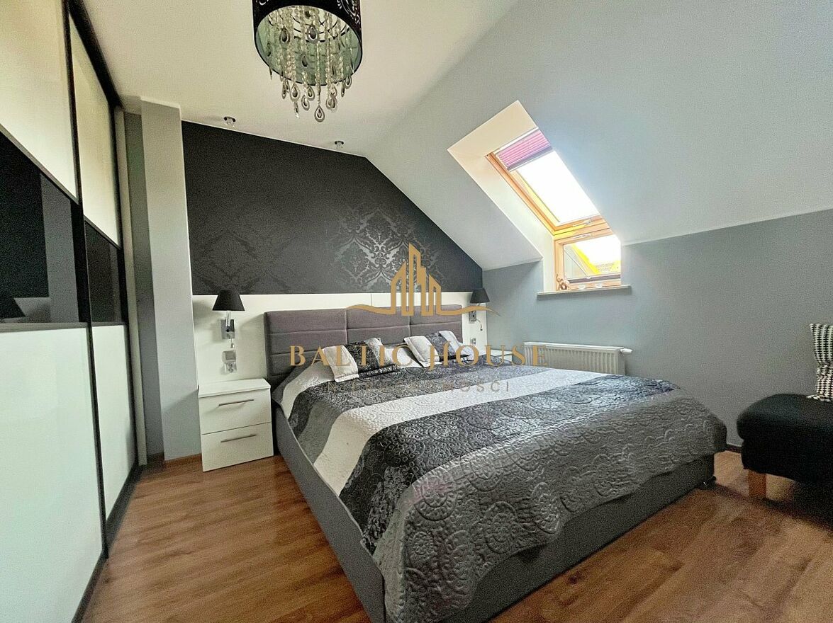 Piętrowy dom w zabudowie szeregowej w popularnej dzielnicy Koszalina - Rokosowo. Okolica charakteryzuje się wieloma terenami zielonymi i licznymi trasami spacerowymi. W pobliżu znajdują się sklepy, punkty usługowe, szkoły i place zabaw. 400 metrów od domu znajduje się przystanek autobusowyumożliwiający szybki dojazd do centrum miasta.