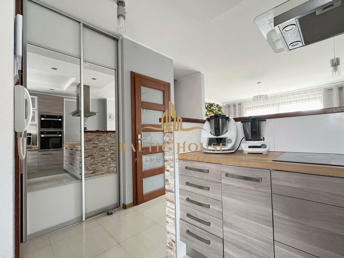 Piętrowy dom w zabudowie szeregowej w popularnej dzielnicy Koszalina - Rokosowo. Okolica charakteryzuje się wieloma terenami zielonymi i licznymi trasami spacerowymi. W pobliżu znajdują się sklepy, punkty usługowe, szkoły i place zabaw. 400 metrów od domu znajduje się przystanek autobusowyumożliwiający szybki dojazd do centrum miasta.