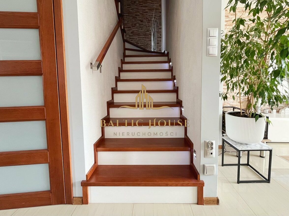 - bardzo duży, praktycznie zagospodarowany strych z półkami i wygodnym wejściem po schodach,