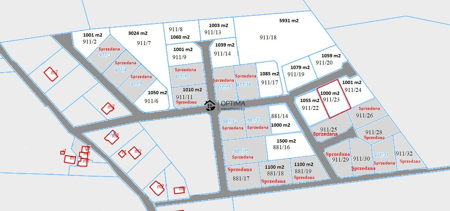- Pow. działki:1000 m2
