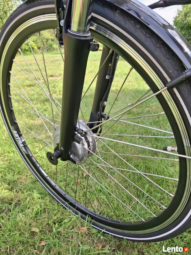 Miejski rower lektryczny o zerowym przebiegu.Specjalizacja włoskiej firmy Devron Solidna prosta forma, solidne wykonanie i niezawodność.Aluminiowa rama 19 cali (490 mm) i koła 28", odpowiedni dla dorosłych i seniorów. Wyposażone w cyfrowy panel sterowania 9 trybów wspomagania jazdy. W przednim kole silnik bezszczotkowy Devron Electric 36V, 250W, moment obrotowy 35 Nm. Bateria litowo-jonowa zamontowana na bagażniku Devron Electric zdejmowana.