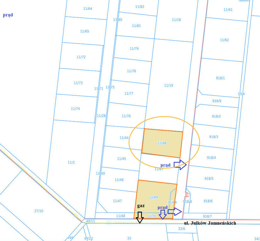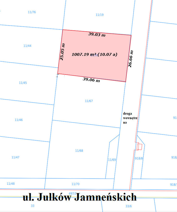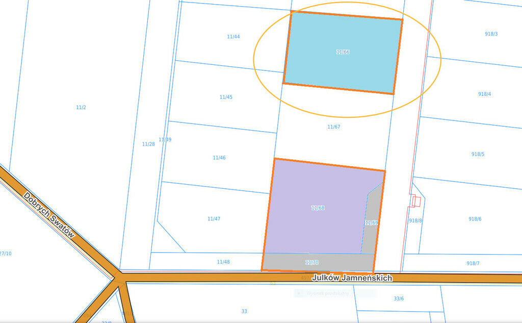 do działki jest zapewniony ulicą Julków Jamneńskich. Jest to nowo