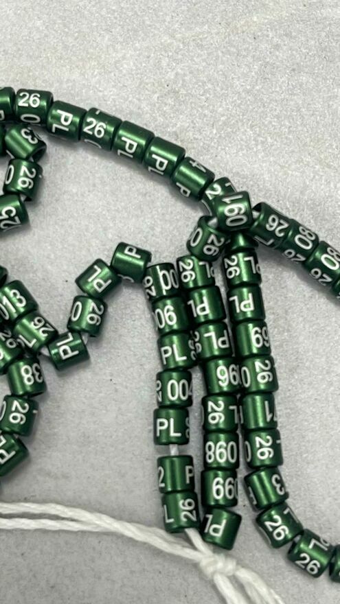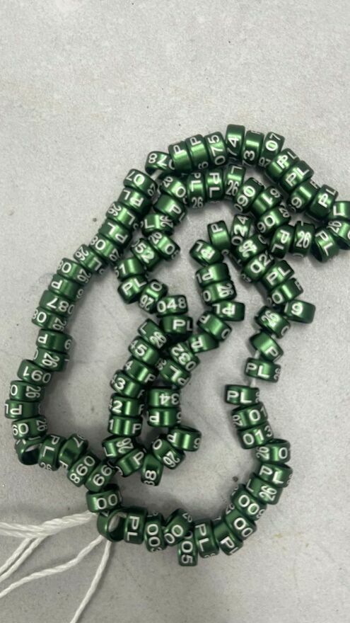 Obrączki aluminiowe na rok 2026 - standardowe rozmiary od 2,5 mm do 7 mm w cenie 1,20 szt. Standardowe grawer PL 001 do 100 i rok. Wysyłka list priorytetowy 9 zl, inpost 12 ,99 po wpłacie na konto lub pobranie 23 zł. kontakt e-mail, tel, SMS, WhatsappJaaa