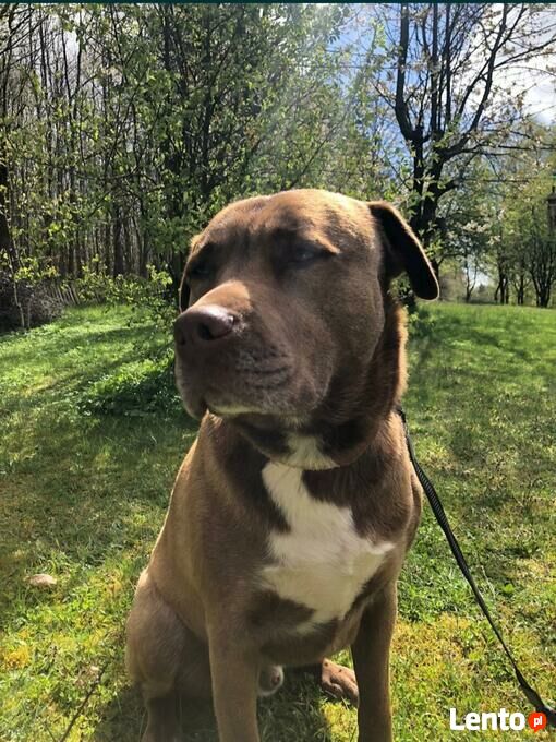 Szukam dobrego domu dla kochana psiaka. Pablo ma 3,5 roku, jest w typie pitbula, szczepienia, czip. Fajnie jakby w domu był drugi pies, kocha zabawę z psami, nie toleruje kotów. Pablo kocha ludzi, uwielbia głaskanie, niezbyt dobrze znosi dłuższą samotność. Jego charakter nie odzwierciedla dość " stanowczy" wygląd. Oddam z całym wyposażeniem( smycze, obroże, miski, karma itp). Więcej informacji udzielę telefoniczniePowiadom o podobnych ogłoszeniach