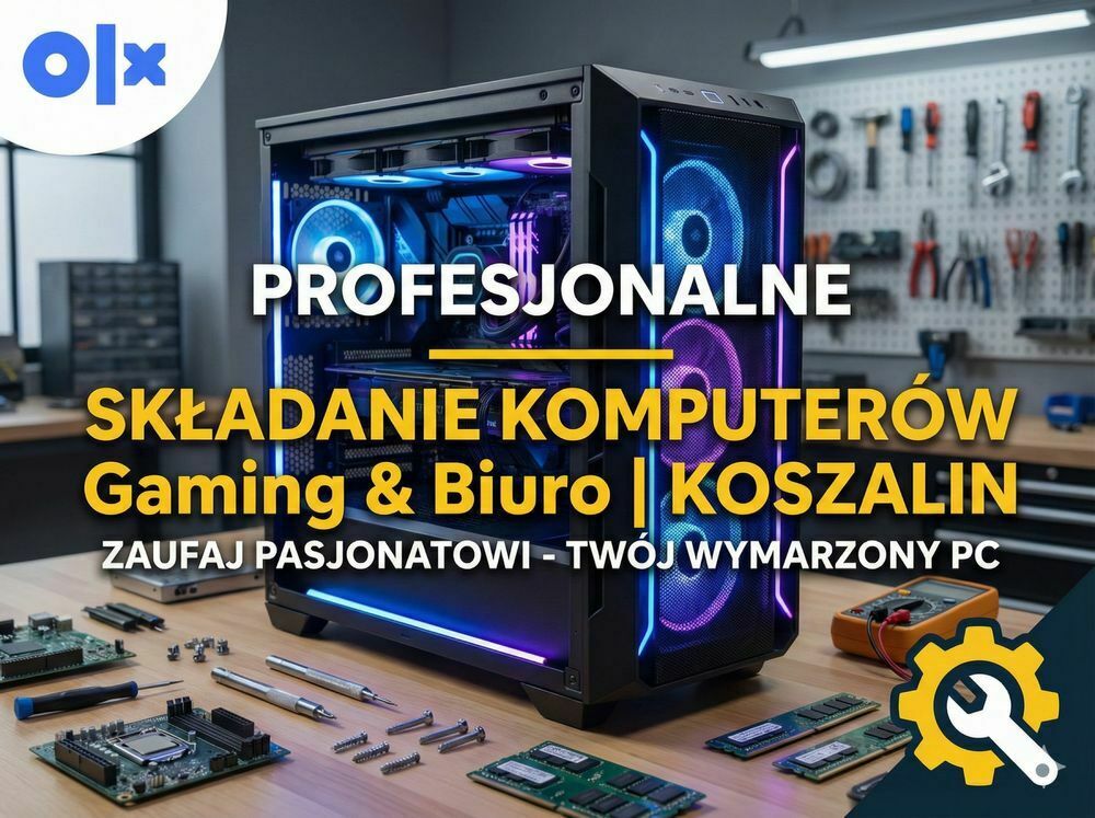 Twój wymarzony komputer w zasięgu ręki – bez przepłacania w marketachCześć! Oferuję profesjonalne usługi składania komputerów stacjonarnych na terenie Koszalina i okolic. Niezależnie od tego, czy potrzebujesz potwora do gier w 4K, stacji roboczej do montażu wideo, czy cichego komputera do nauki i biura – pomogę Ci go stworzyć.