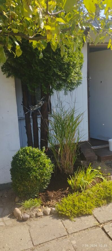 Działka o powierzchni 336 m2 z domkiem drewnianym oraz domurowanym zapleczem na narzędzia - wędzarnią oraz WC . Do prowadzony jest prąd oraz woda . W skład działki wchodzi również altanka letni z ławą i siedzeniami. Całość jest zadaszona i pokryta blacho - dachówką.Są też krzewy jak borówka amerykańska - jagoda kamczacka - porzeczka czarna agrest oraz drzewka jabłoni i czereśnia - młode winogrona.