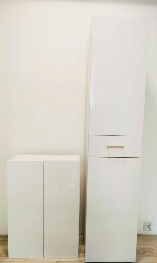 Sprzedam 2 szafki biały połysk. Wisząca i słupek.Marta