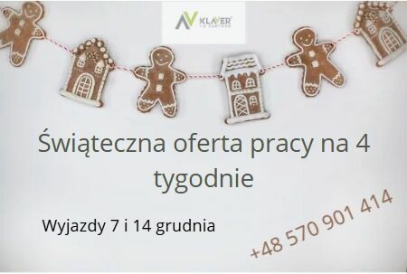 Szybki zarobek w Holandii - praca świąteczna min. 4-6 tyg.
