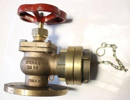 Zawory mosiężne hydrantowe morskie kątowe z zaślepką DN 50. PN 16. RG-5. Producent Dikkan. Nieużywane leżaki ...