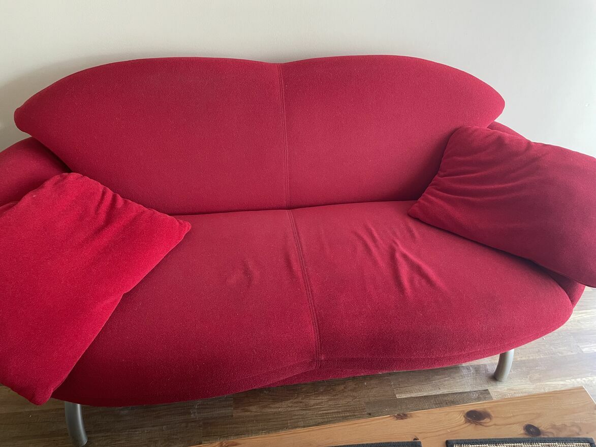 Sofa z dwoma fotelami, czerwone, szafa dwudrzwiowa i biurko, stan dobry oddam za darmoWłodzimierz Strzymiński